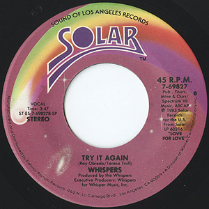 60年代より活躍するベテランヴォーカルグループWhispersの83年発表アルバム「Love For Love」からのシングルカット。 抑揚を抑えたクールなモダンディスコ「Keep On Lovin' Me」、メロウモダンソウル「Try It Again」共にグレイト!!