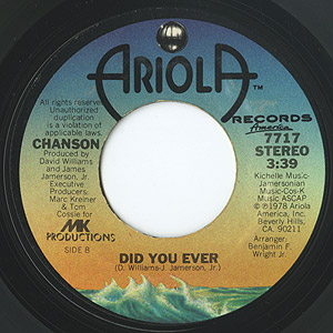 David WilliamsとJames Jamerson JrのユニットChansonのファーストアルバムからのシングルカット。 ナイスモダンディスコ「Don 't Hold Back」、メロウダンサー「Did You Ever」共にナイス!!