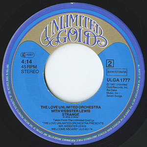 Barry White率いるLove Unlimited Orchestraと鍵盤奏者Webster Lewisが共演した81年発表アルバムからのシングルカット。 アルバムタイトルにもなった滑らかな高揚感が心地良い「Welcome Aboard」、メロウダンサー「Strange」ともに良いです。