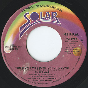 Jody WatleyとJeffrey Danielが脱退前、最後のアルバムとなった83年作「The Look」からのシングルカット。 Loen Sylvers IIIによるメロウなプロダクションと艶やかなHoward Hewettのヴォーカルがバッチリとハマったメロウダンサー名曲!! 裏の「You Won't Miss Love (Until It's Gone)」も同タイプのメロウブギーで両面使えます!!