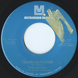 ホーンやオルガンが楽しげに疾走する前半も格好良いですが、後半にあるヒップホップからテクノまで数多くサンプリングされたドラムブレイクがやはり強烈!! 同年発表アルバムのタイトルにもなったクロスオーバーソウル「Color Him Father」もグレイトなダブルサイダーシングル!! カナダ盤ヴァイナルプレス