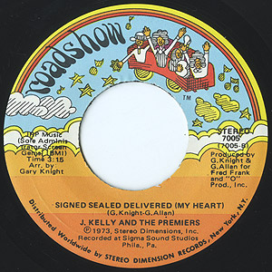 フィラデルフィア出身のソウルグループJ. Kelly & The Premiersの73年リリースシングル。 「She Calls Me Baby」はNas「Moments」やNxWorries「SheUsed」などでサンプリングされたグレイトスウィートソウル!! 裏の「Signed Sealed Delivered (My Heart)」も良いです。