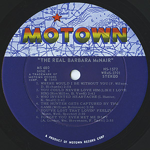 音楽一家に生まれ50年代から活躍する女性シンガーBarbara McNairの69年リリースレコード。
