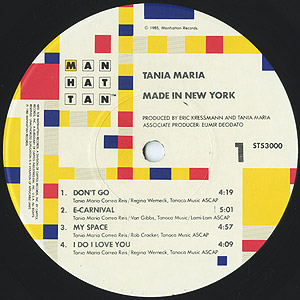 ブラジル出身の女性シンガーTania Mariaの85年リリースアルバム。同郷の名鍵盤奏者/プロデューサーEumir Deodatoが参加。 45KingがQueen Latifa「How Do I Love Thee」でサンプリングしたアーバン/クロスオーバートラックB1「Made In New York」をはじめ、耳に残るイントロのフレーズも好印象なメロウブラジリアンフュージョンA2「E-Carnival」といったナイストラックを収録です!!
