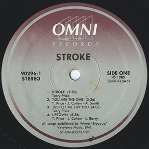 Alfonso Smith、Renee Aldrich、Terry Price、Joe Glover、Lorraine Toppingから成る男女混成グループStrokeの85年リリースレコード。 腰を刺激するエレクトリックファンクなトラックと艶やかさを湛えたヴォーカルが絡み合うB4「Tell Me」、男女ヴォーカルの掛け合いも好印象なA2「You Are The One」、アーバンメロウA3「Just Let Me Luv You」などナイストラックを収録です!!