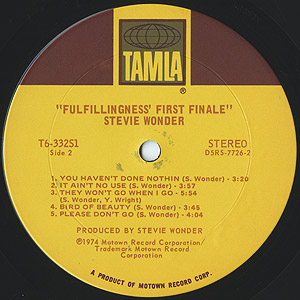 大名盤「Innervisions」に続く74年リリースレコード。 Esther SatterfieldにもカバーされたB4「Bird Of Beauty」、こちらも色々なアーティストにカバーされたA5「Creepin'」、B2「I Ain't No Use」、Biz Markie「The Do Do」でサンプリングされたA4「Boogie On Reggae Woman」などを収録した絶頂期を象徴する名盤の1つです!!