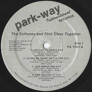 ボルチモアを拠点に活躍した2つのソウルグループThe SoftonesとFirst Classが79年に発表したスプリットアルバム。突き抜けるような爽快な高揚感が好印象なFirst Class「Candy」を筆頭にCheckmates LtdのカバーA2「Laying My Heart On The Line」、Softonesが歌うフィリーダンサーA4「Can You Feel It」などナイストラックを収録です!!