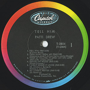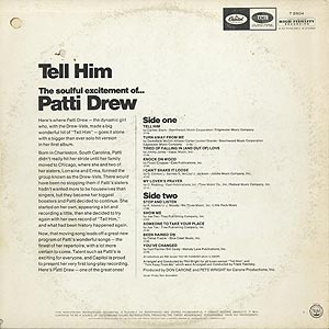 ノースカロライナ州はシャーロット生まれ、Capitolレーベルを中心に活躍した女性シンガーPatti Drewの記念すべきファーストアルバム。 タイトル曲「Tell Him」、Otis ClayのカバーA3「Tired Of Falling In Love」、Supremesもカバーした「I Can't Shake It Loose」、原曲同様ドラムブレイクで幕を開けるJoe Texのカバー「Show Me」、B1「Stop and Listen」などナイストラック満載です!!