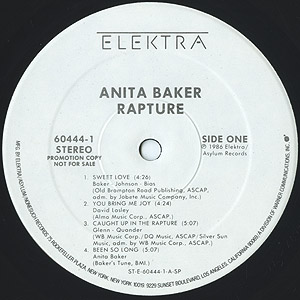 グループChapter8のリードシンガーAnita Bakerの86年リリースレコード。2ndアルバム。 Michael PowellをはじめChapter8のメンバーが参加。グラミー賞を取ったA1「Sweet Love」をはじめ、A3「Caught Up In The Rapture」、メロウダンサーB1「Mystery」、A4「Been So Long」など枚挙に暇がないアーバンソウル/コンテンポラリー名盤です!!