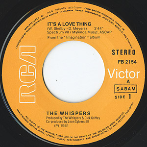 「And The Beat Goes On」などのディスコヒットで知られるベテラン男性ヴォーカルグループThe Whispers。 こちらは80年発表アルバム「Imagination」からのシングルカット。 Leon Sylversプロデュースのモダンディスコ名曲「It's A Love Thing」、メロウモダンソウル「Girl I Need You」共にグレイトです!!