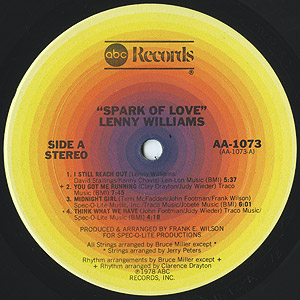 Tower Of Powerでの活躍も知られるヴォーカリストLenny Williamsの78年リリースレコード。 Kanye WestがTwista「Overnight Celebrity」で早回しサンプリングしていたメロウB1「Cause I Love You」をはじめ、ディスコ名曲A2「You Got Me Running」A1「I Still Reach Out」、B2「Changes」といった高揚感たっぷりのモダンダンサーなど好トラック満載です!!