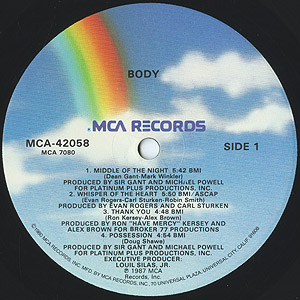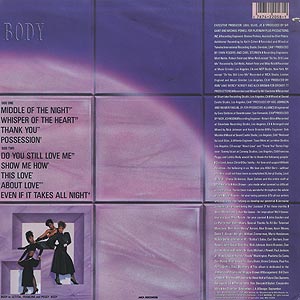 Letitia、Francina、PeggyのBody三姉妹から成るトリオBodyのデビューアルバム。 アカペラで幕を開けるアーバンメロウA2「Whisper Of The Heart」、エレクトロブギーB1「Do You Still Love Me」やB4「About Love」、スロウB3「This Love」などナイストラックを収録!!