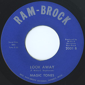 Calvin Stephenson、Paul Willisを中心とするデトロイトのヴォーカルグループMagic Tonesが地元のスモールレーベルRam-Brockに残したシングル。 Impressionsの影響を強く感じる高揚感のあるメロディーが印象的なノーザンソウル「Great Day」、味わい深いミディアム「Look Away」共に良いです。