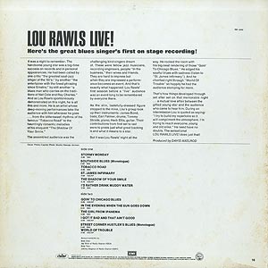 として多大な活躍を果たしたシカゴ出身のシンガーLou Rawlsの66年発表のライブ録音盤。