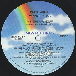 フィラデルフィア出身の名シンガーPatti Labelleの86年発表アルバム。 C.L. Smooth「Is It Really You」で早回しサンプリングされたメロウ「Finally We're Back Together」、Richard Perryプロデュースの「Oh People」、Michael McDonaldとのデュエット曲「On My Own」辺りがおすすめです。