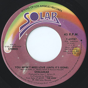 Jody WatleyとJeffrey Danielが脱退前、最後のアルバムとなった83年作「The Look」からのシングルカット。 Loen Sylvers IIIによるメロウなプロダクションと艶やかなHoward Hewettのヴォーカルがバッチリとハマったメロウダンサー名曲!! 裏の「You Won't Miss Love (Until It's Gone)」も同タイプのメロウブギーで両面使えます!!