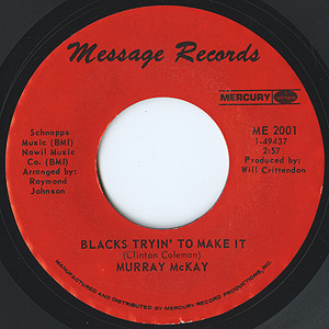詳細不明のシンガーMurray McKayの唯一と思われるシングル。 後半のパーカッシブなブレイクパートも激渋な「Don't Let The Pusher Push You」、コーラスをフィーチャーした「Blacks Tryin' To Make It」ともにメッセージ性の強いナイスファンク!!