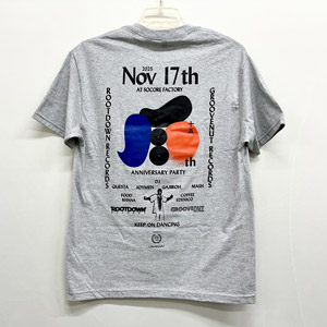 弊店とRootdown Recordsの15周年を記念したパーティーフライヤーを背中にプリントした限定のTシャツです。