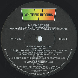 Norman WhitfieldがプロデュースしたグループMammatapeeのデビューアルバム。 「Good Lovin'」、「Girl, I Wanna Get Right Up Next To You」、「Something On Your Mind」辺りのメロウトラックから、「Caught Up In The Race」、「You're Good For Me」といったファンク/ディスコチューンまでナイストラック満載です。