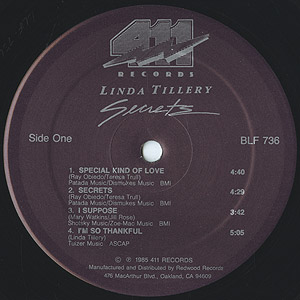 バンドThe Loading Zoneにも在籍したシンガーLinda Tilleryの85年発表アルバム。 躍動感溢れるグルーヴが印象的なモダンディスコ「Count On Me」をはじめ、冒頭を飾る「Special Kind Of Love」、タイトル曲「Secrets」、「I Suppose」辺りのモダンソウルトラックから古典「Fever」のナイスカバーまでナイストラック満載です。