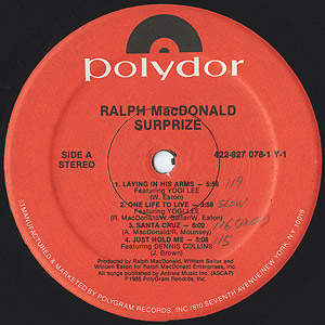 ニューヨーク出身のパーカッション奏者Ralph MacDonaldの85年発表アルバム。 Yogi Leeをフィーチャーしたグレイトモダンダンサー「Laying In His Arms」をはじめ、Dennis Collinsをヴォーカルに迎えた「You Need More Calypso」、フュージョンダンサー「Santa Cruz」、Steve Gadd参加、パーカッションとドラムを主体とした「Surprize」などナイストラック満載です。