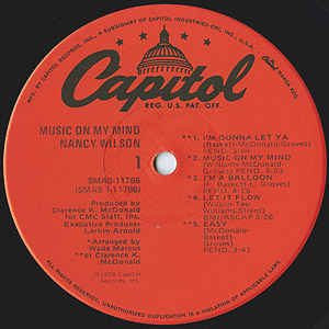 50年代後期より活躍するベテランシンガーNancy Wilsonの78年発表アルバム。 Erykah Badu「Honey」でサンプリングされ人気が急上昇したメロウダンサー「I'm In Love」を収録!! グルーヴィーダンサーA1「I'm Gonna Let Ya」、メロウA4「Let It Flow」辺りもオススメです!!