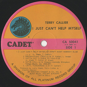 シカゴ出身のシンガーソングライターTerry Callierの73年作。どれもが名作と名高いCadetレーベル3部作の最後を飾る1枚。勿論、Charles StepneyとRichard Evansも参加です。A1「I Don't Want Nobody Else」を筆頭に、A3「Gotta Get Closer To You」、A2「Brown-Eyed Lady」等、エモーショナルで温かみのある楽曲が沁みる名曲がズラリと並んだ名盤です!!