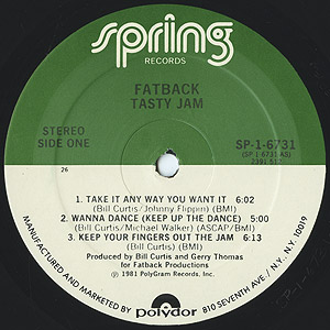 Bill Curtis率いるファンクバンドFatbackの81年作。 イントロのディスコブレイクが印象的なA1「Take It Any Way You Want It」をはじめ、A3「Keep Your Fingers Out The Jam」、B1「Kool Whip」、B2「High Steppin」等、ナイスディスコ/ブギーが満載です!!