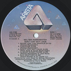 女優としても知られる、ニューヨーク出身のシンガーMelissa Manchesterの78年リリースレコード。