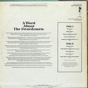 Eddie AndersonとRaymond Thompsonから成るデュオSwordsmenのファーストアルバム。 重厚かつファンキーな演奏のB5「That's When A Woman Needs A Man」やディープソウル「Here I Am」、「Oh My Soul」、ファンキーなA5「Nothing Can Change This Love」等、迫力のあるツインヴォーカルで聞かせるナイスソウルを収録。