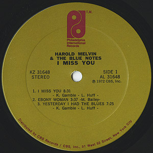 Teddy Pendergrassも在籍したフィラデルフィアソウルを代表するグループHarold Melvin & The Blue Notesの記念すべきファーストアルバム!!