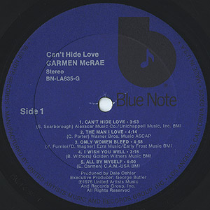 50年代から活躍するベテラン女性ジャズヴォーカリストCarmen McRaeの76年発表作。 Earth, Wind & Fireの名曲カバー「Can't Hide Love」、9th Wonder「Ya Hear Me」でサンプリングされていたA3「Only Women Bleed」、B1「Music」等、ナイストラック満載です!!