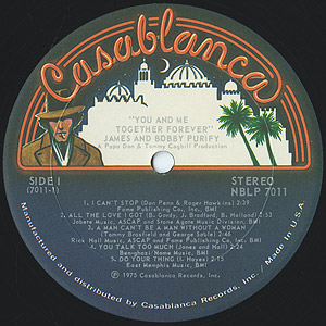 名曲「I'm Your Puppet」で知られるヴォーカルデュオJames & PBobby Purifyの75年リリースアルバム。 Isaac Hayes「Do Your Thing」の軽快なカバーやクロスオーバーソウルB1「Silly Little Girl」やディープソウルB5「You and Me Together Forever」等、ナイストラックを収録です。