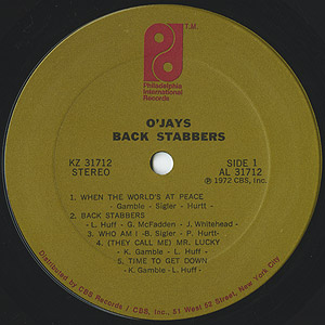 Gangstarr「I'm The Man」等でサンプリングされたA1「When The World's At Peace」、放題「裏切り者のテーマ」で知られるタイトル曲「Back Stabbers」をはじめ、Diplomatsの同名曲で早回しサンプリングされたメロウソウルA3「Who Am I」等、枚挙に暇がないソウル名盤!!