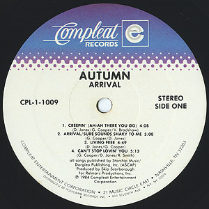 Skip Scarboroughがプロデュースを担当した男性4人組バンドAutumnの84年リリースアルバム。 B1「Culture Shock」をはじめ、B3「Computer Touch」、A1「Creepin」辺りのエレクトロ/ブギートラックから、軽やかで涼し気なB2「In Time」、ドラムブレイクで始まるB4「Come Walk My Way」とA4「Can't Stop Lovin' You」のメロウトラック等、ナイストラックを収録です!!