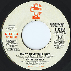 ソロファーストアルバム「Patti Labelle」からのシングルカット。アルバム中でもハイライトになったJeffery Cohen、Ray Parker Jrのペンによる幸福感に満ちたダンスクラシックス!!