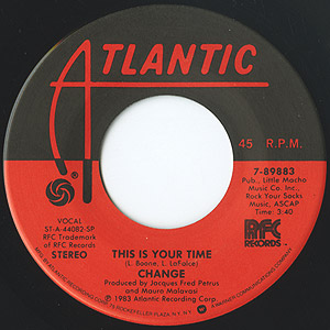 Jacques Fred PetrusとMauro MalavasiがプロデュースしたディスコグループChangeの83年作「This Is Your Time」からのシングルカット。硬質なディスコグルーヴにJames Robinsonの艶やかなヴォーカルが絡む傑作モダンディスコ!!裏のメロウブギー「You'll Never Realize」も良いです。