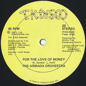 イギリスのMFSBことArmada Orchestraの76年作「Philly Armada」からのシングルカット。フィリークラシックとして名高いO'Jays「For The Love Of Money」のナイスインストカバー!!
