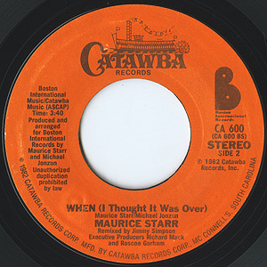 The Jonzun Crewでの活躍も知られるシンガーソングライターMaurice Starrの82年発表シングル。情感豊かに歌い上げたモダンメロウソウル「When (I Thought It Was Over)」、Pファンク「You and Me」ともにナイスです。