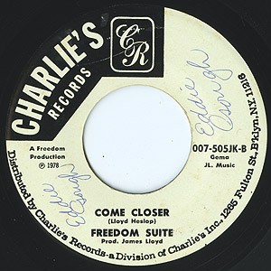 ジャマイカ出身、主にヨーロッパで活躍したシンガーソングライターJames Lloydを中心とするグループFreedom Suiteの78年発表シングル。Side-B「Come Closer」は、2枚使いが映えそうなナイスグルーヴなイントロで幕を開けるナイスアイランドソウル/ディスコ!!Dimitri From ParisがMuroさんとの「Super Disco Friends」で使っていました。