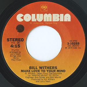 「Lovely Day」などの名曲で知られるウェストバージニア出身の名シンガーソングライターBill Withersの75年発表アルバム「Making Music」からのシングルカット。タメのあるグルーヴが印象的な「Make Love To Your Mind」、メロウ「I Love You Dawn」のアルバム中でも人気だった曲をカップリングしたダブルサイダー。