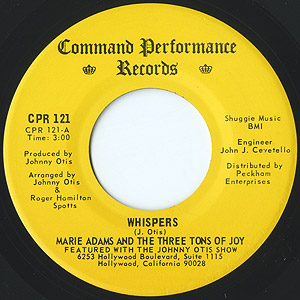 50年代より活躍するベテランシンガーMarie Adamsを中心とする姉妹トリオの72年発表シングル。ディープ/クロスオーバーソウル「Whispers」、タメのあるグルーヴが印象的な「Get On Up and Do It Baby」共にJohnny Otisがバックアップしたグレイトチューン!!
