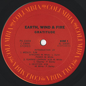 Maurice Whiteを中心に結成、Philip Bailey、Al McKay等が在籍した大所帯ファンクバンドEarth, Wind & Fireの75年リリースレコード。