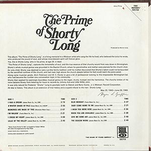 29歳という若さでこの世を去ったシンガーFrederick Earl LongことShorty Longの69年リリースレコード。 A1「I Had A Dream」、サイケデリックなアレンジが格好良いB5「Give Me Some Air」、ファンキーなB6「The Deacon Work」、A4「I'm Walkin'」などナイストラックを収録!!