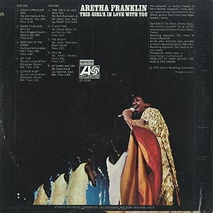 クイーンオブソウルの異名を持つテネシー生まれの名女性シンガーAretha Franklinの70年リリースアルバム。 涙腺を刺激するメロディーが非常に印象的なラブソング「Call Me」は、Kanye WestをフューチャリングしたSlum Villageの「Selfish」でサンプリングされていました。他、Dusty Springfield「Son Of A Preacher Man」、Beatles「Eleanor Rigby」などのナイスカバーなど充実の内容です!!