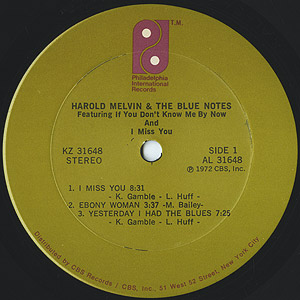 Teddy Pendergrassも在籍したフィラデルフィアソウルを代表するグループHarold Melvin & The Blue Notesの記念すべきファーストアルバム!!