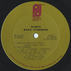 Gang Starr「I'm The Man」等でサンプリングされたA1「When The World's At Peace」、邦題「裏切り者のテーマ」で知られるタイトル曲「Back Stabbers」をはじめ、Diplomatsの同名曲で早回しサンプリングされたメロウソウルA3「Who Am I」等、枚挙に暇がないソウル名盤!!