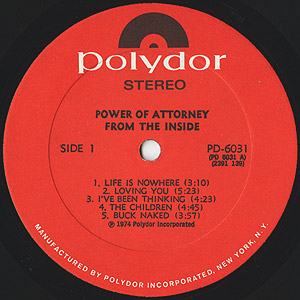 Graterford刑務所の囚人によるバンドThe Power Of Attorneyの唯一のアルバム。終盤にB-Boyブレイクが入るファンクトラックA5「Buck Naked」やB2「Jelly Roll」、ソウルフルダンサーA3「I've Been Thinking」から、A2「Loving You」、B1「Turn Around」、B4「No More」辺りのメロウソウルまで捨て曲無しのグレイトアルバム!!