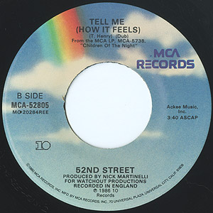 Diane Charlemagne、Tony Henryらを擁するイギリスはマンチェスターのバンド52nd Streetの85年リリースレコード。 David Toddとの活躍でも知られるNick Martinelliがプロデュースを担当し、彼らの最大のヒット曲となったアーバンメロウファンクの傑作!! カップリングのDubも使えます!!