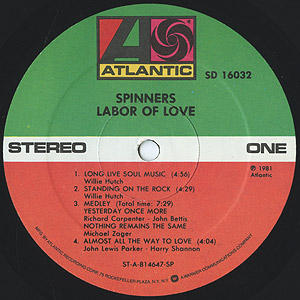 デトロイト出身の男性ヴォーカルグループSpinnersの81年リリースレコード。 ラップ調のヴォーカルもファンキーなB5「The Deacon」やWillie Hutch作のA1「Long Live Soul Music」辺りのディスコフィーリング溢れる楽曲から、ミッドテンポのダンサーB1「The Winter Of Our Love」といったナイストラックを収録です!!